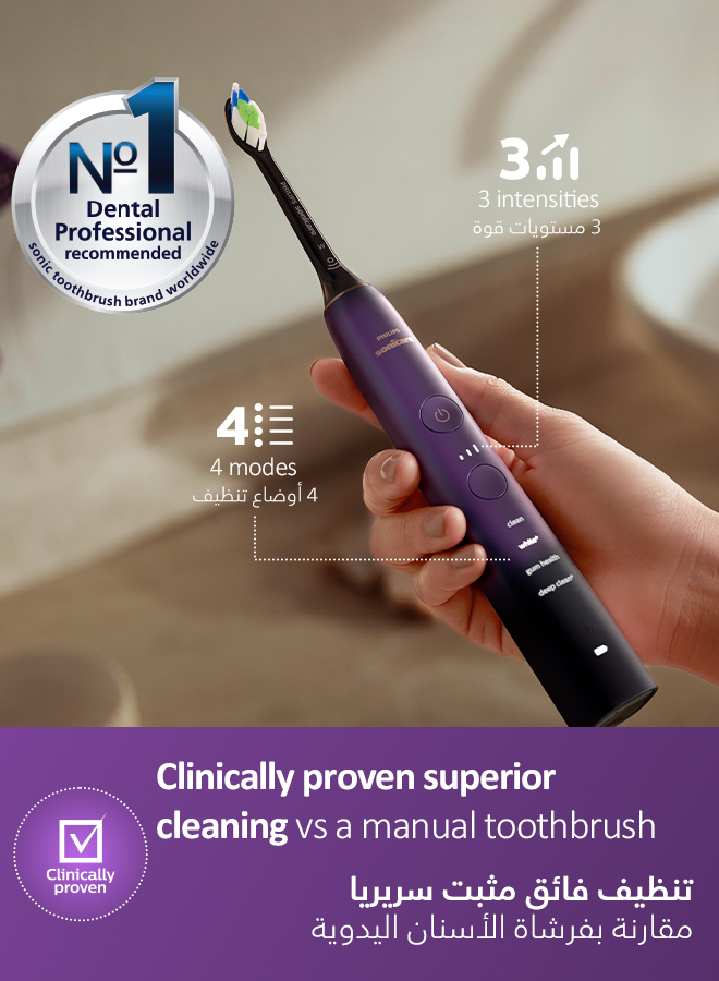 Get a healthier, brighter smile with the Philips Sonicare 9000 Special Edition Rechargeable Toothbrush. This toothbrush features a pressure sensor, 4 brushing modes, 3 intensities and smart brush head mode pairing technology. The Philips Sonicare 9000 Special Edition will look beautiful in your bathroom, with elegant charging glass and premium finishings. Track your brushing within the Sonicare App to ensure you're reaching your oral health care goals.